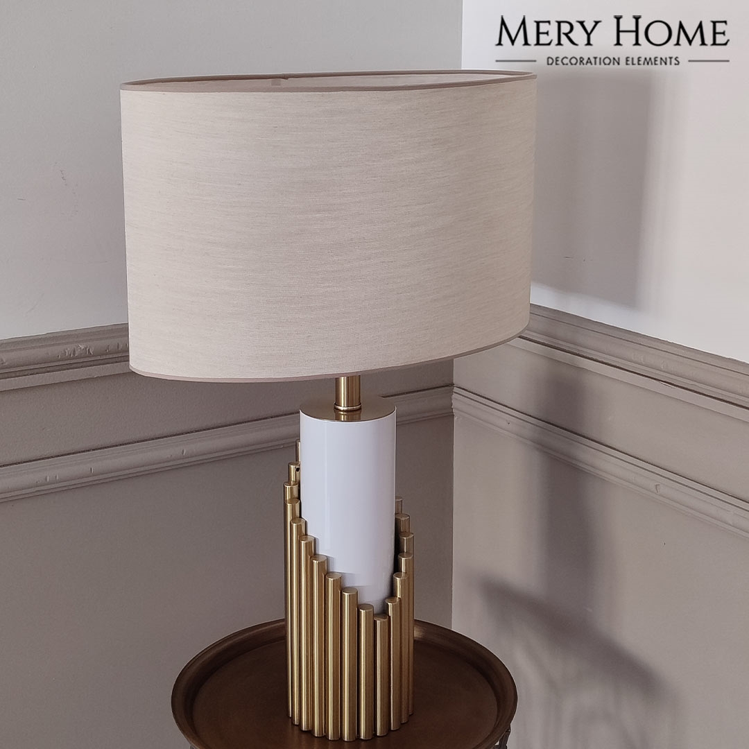 Lampara Beyaz Metal – Gold Metalli Lüks ve Modern Tasarım Abajur, yaşam alanlarına zarafet ve modernlik katmak isteyenler için özel olarak tasarlanmıştır. Minimal çizgileri, beyaz metal gövdesi ve gold detaylarıyla öne çıkan bu şık aydınlatma ürünü; salon, yatak odası, ofis, çalışma odası ve otel gibi alanlarda dekoratif bir tamamlayıcı parça olarak mükemmel uyum sağlar.