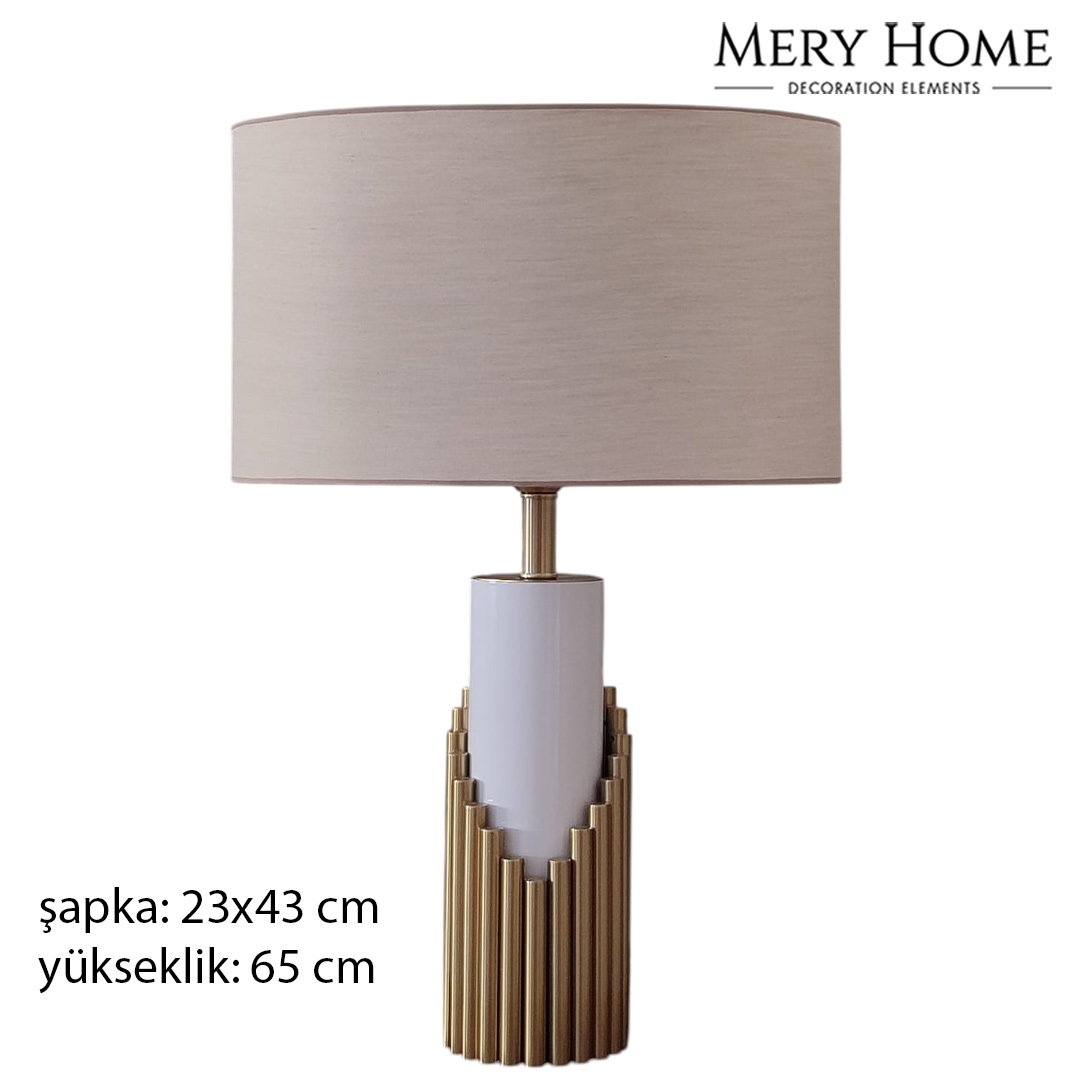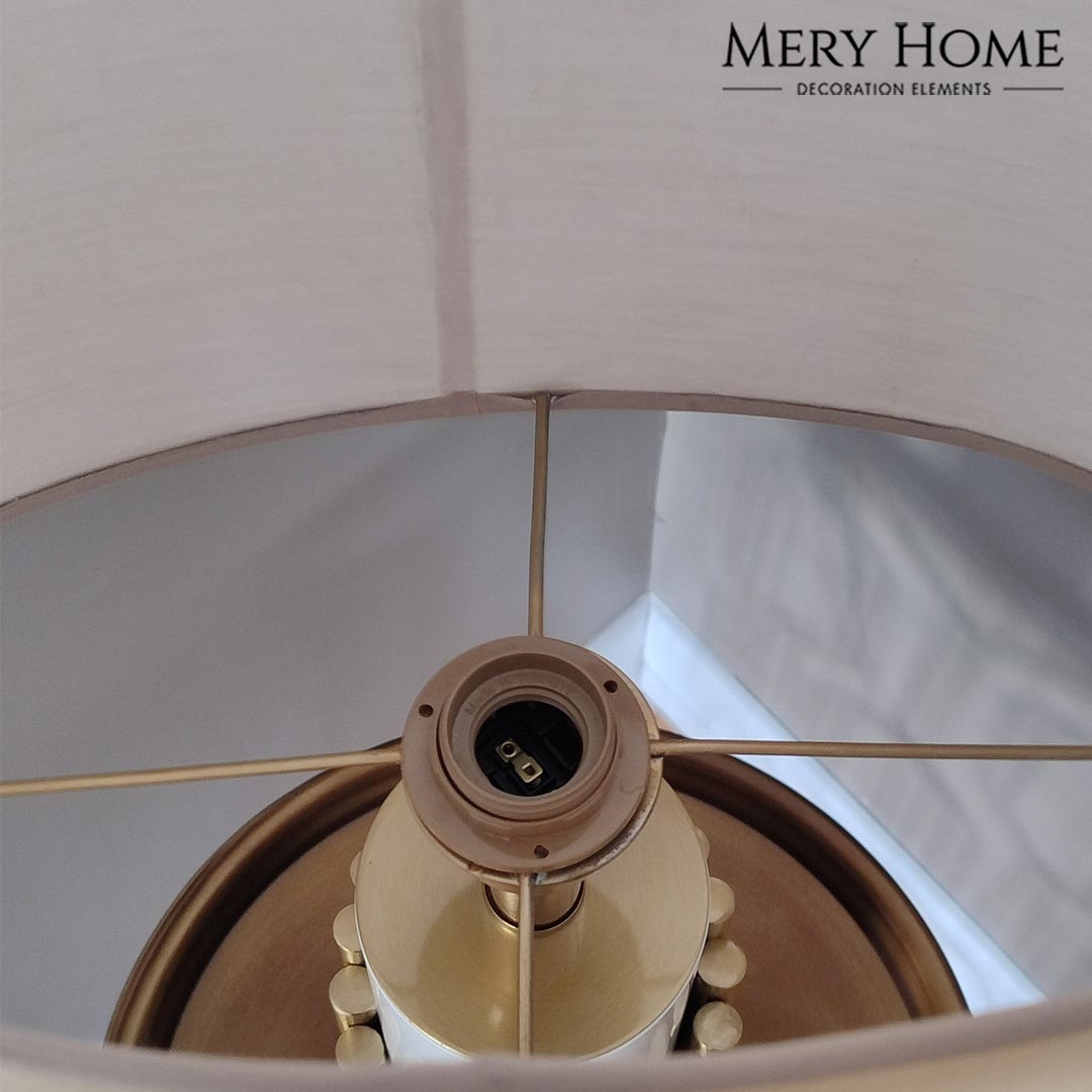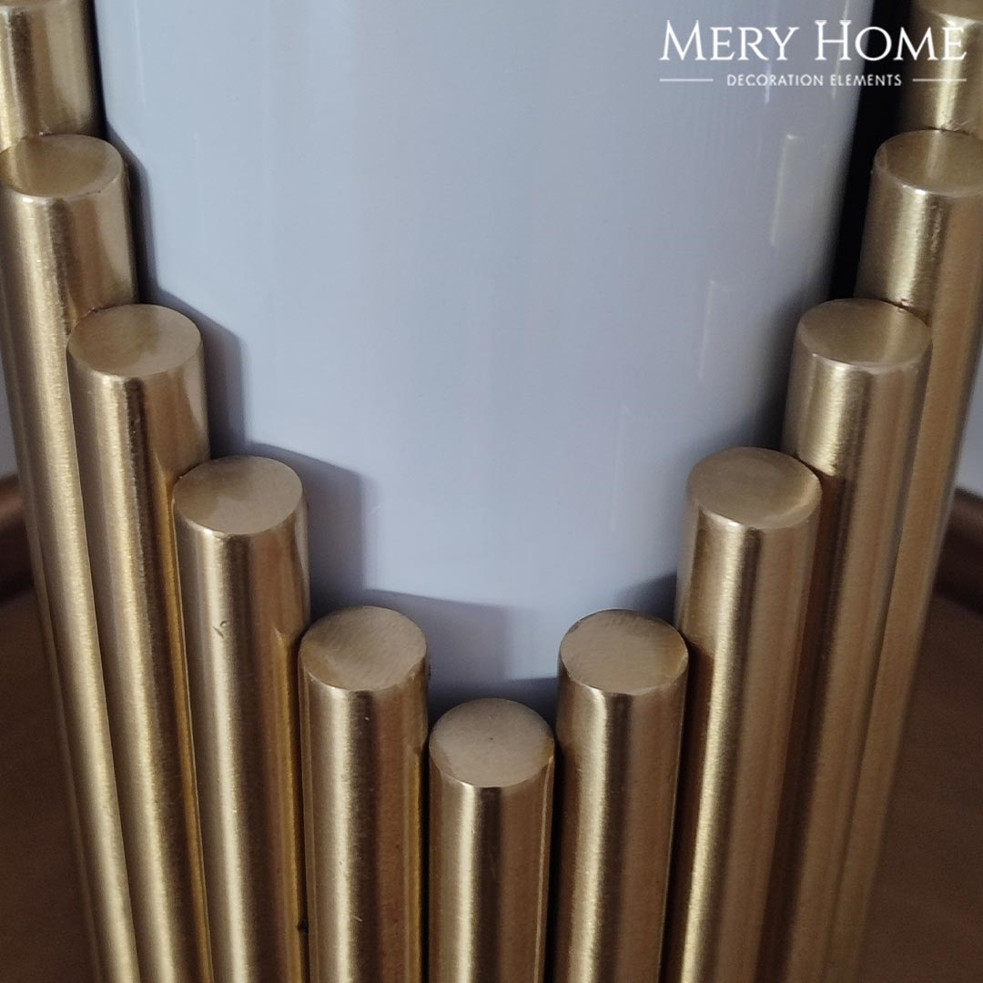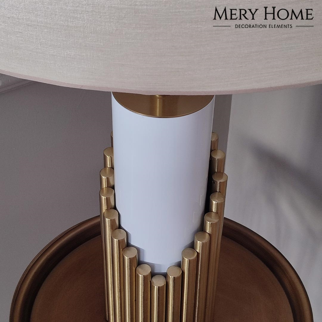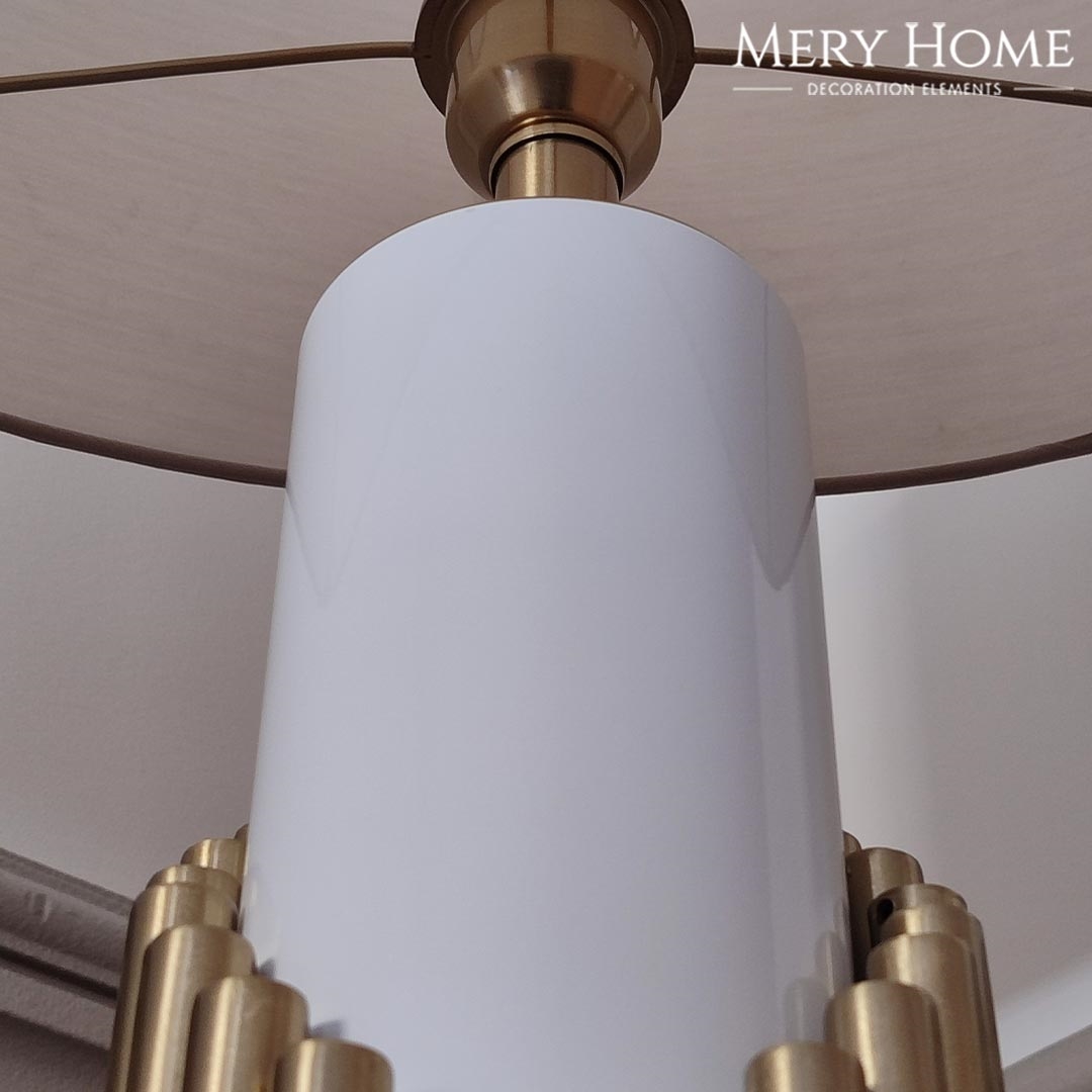 Yüksek kaliteli metal malzeme yapısı sayesinde uzun ömürlü kullanım sunan abajur, yumuşak ve göz yormayan ışık yayarak hem dekoratif hem de fonksiyonel bir aydınlatma deneyimi sağlar. Estetik tasarımı, modern ve lüks dekorasyon tarzlarıyla kusursuz bir bütünlük oluşturur. Gold metalli detaylar, ürüne premium bir görünüm kazandırırken, beyaz metal yüzey ortamı daha ferah ve aydınlık gösterir.
