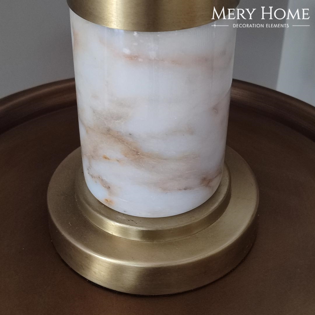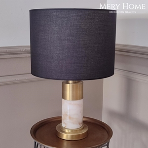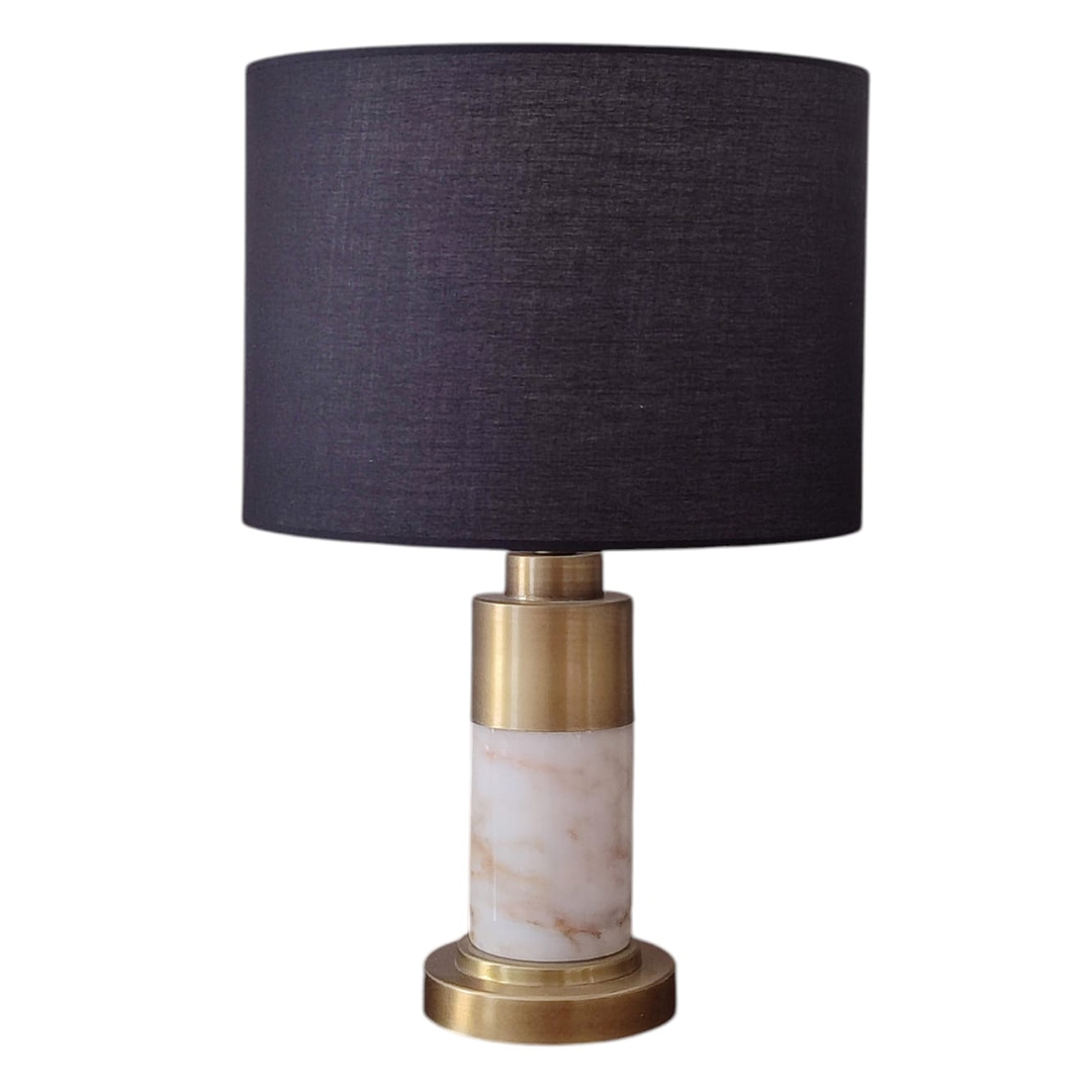 Mermer tarzı gövde, abajura lüks ve dayanıklı bir karakter kazandırır. Siyah renkli şapka, ortamda güçlü ve dramatik bir etki yaratırken, ışığı yumuşak ve sıcak bir şekilde yayar; bu sayede salon, çalışma odası, yatak odası veya ofis gibi alanlarda rahatlatıcı ve dekoratif bir aydınlatma sağlar.
