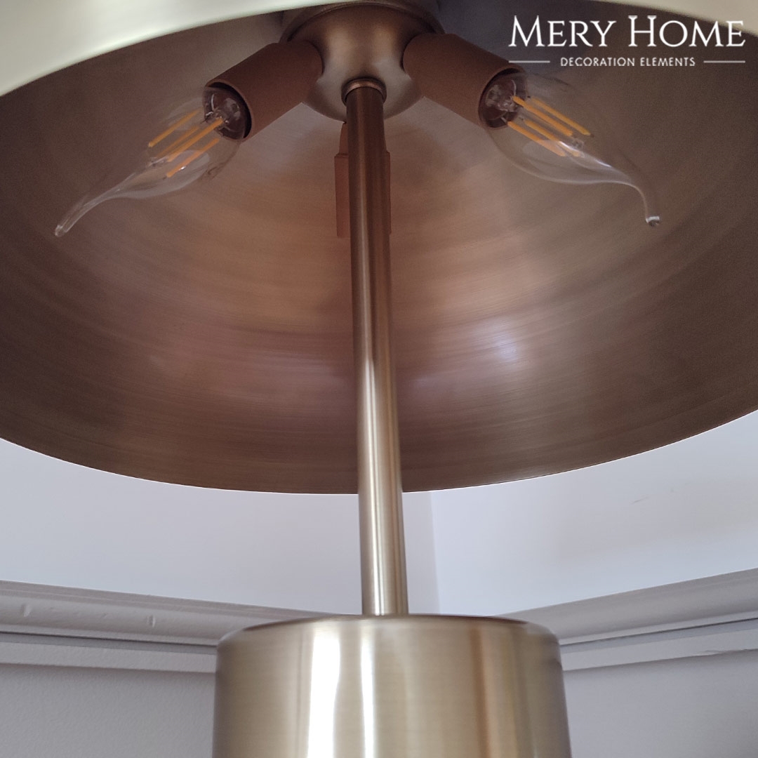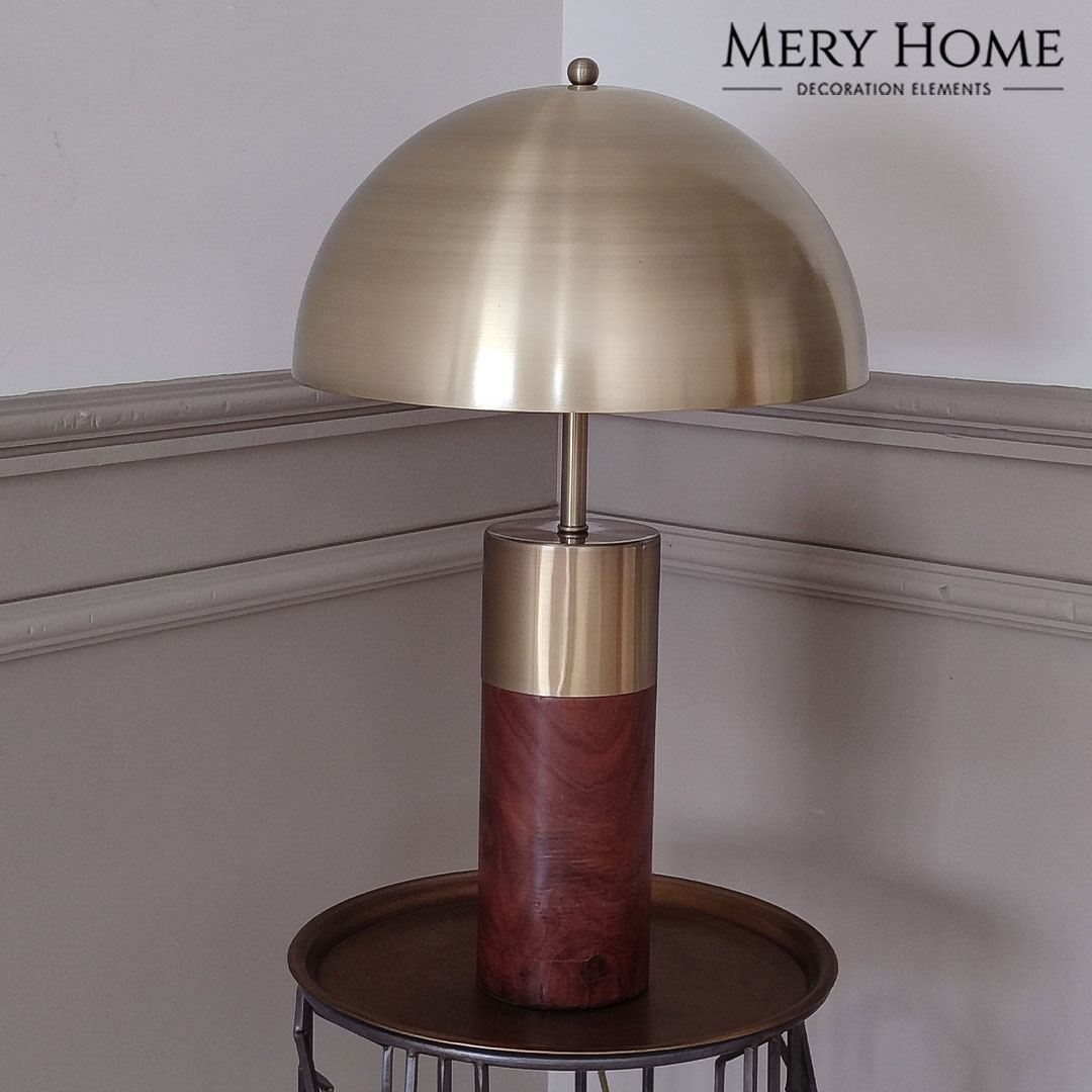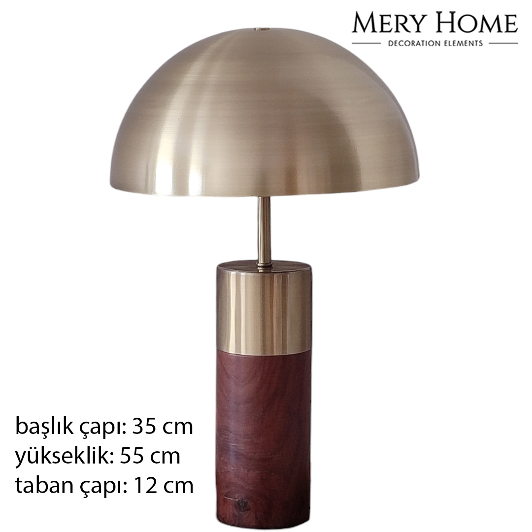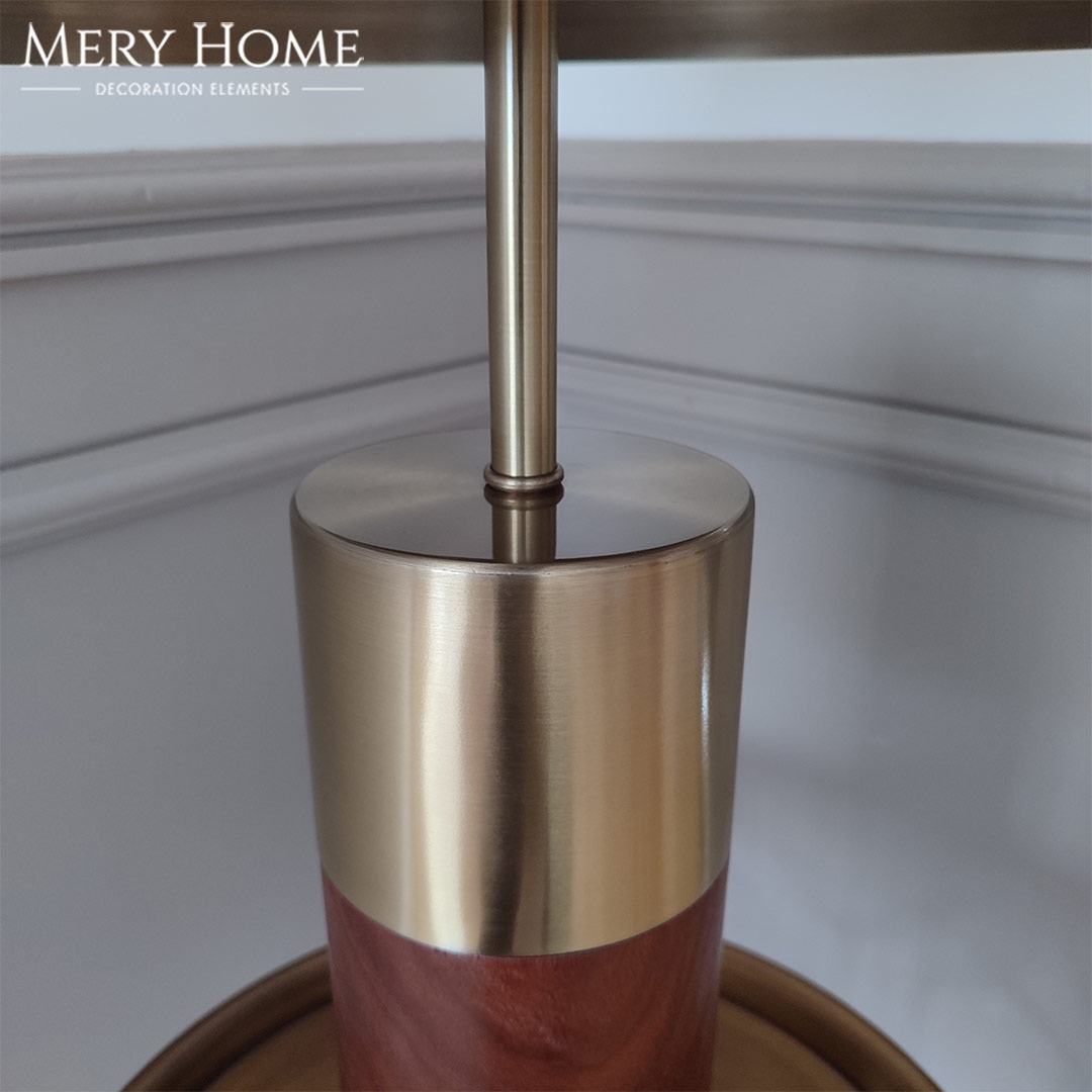 Marcello Ahşap Gövdeli Eskitme Gold Metal Şapkalı Lüks ve Modern Tasarım Abajur, doğal ve sofistike dokunuşları bir araya getiren zarif bir masa lambasıdır. Ahşap gövdesi ile mekâna sıcaklık ve doğallık katarken, eskitme gold metal detaylar ile lüks ve modern bir hava sunar. Şapkalı tasarımı sayesinde ışığı yumuşak bir biçimde dağıtarak ortamda hoş, davetkâr bir atmosfer oluşturur.