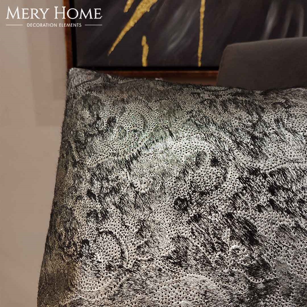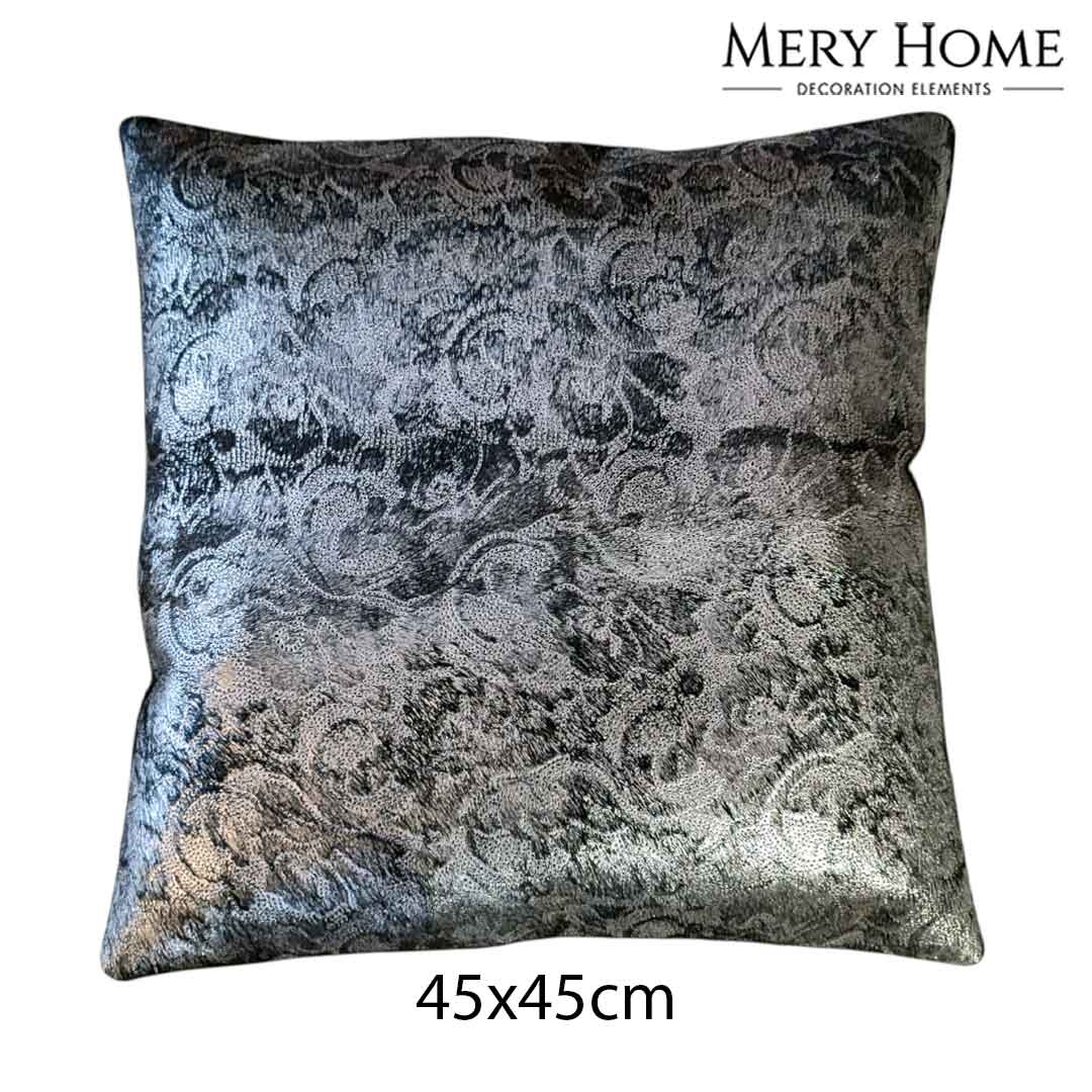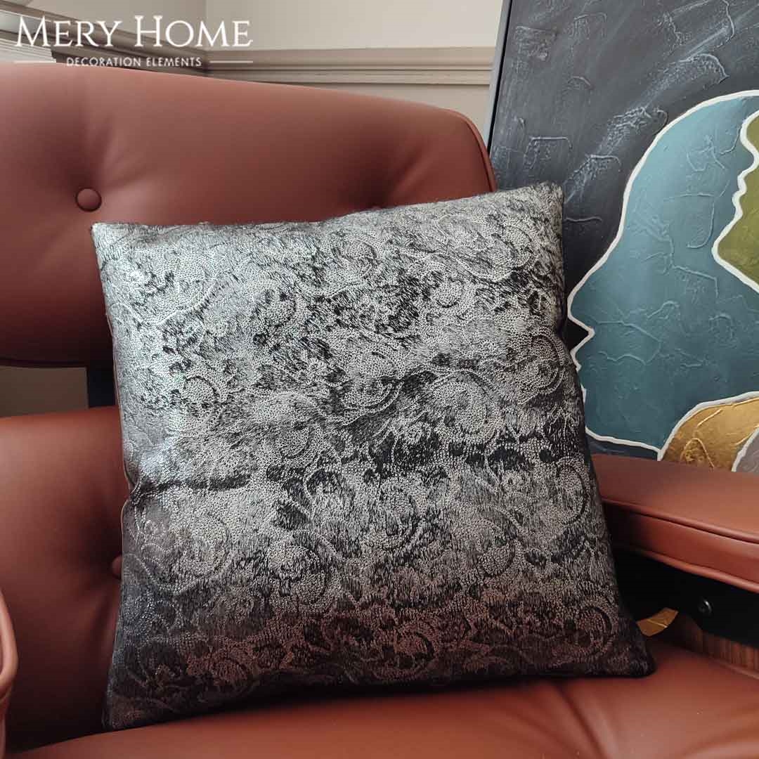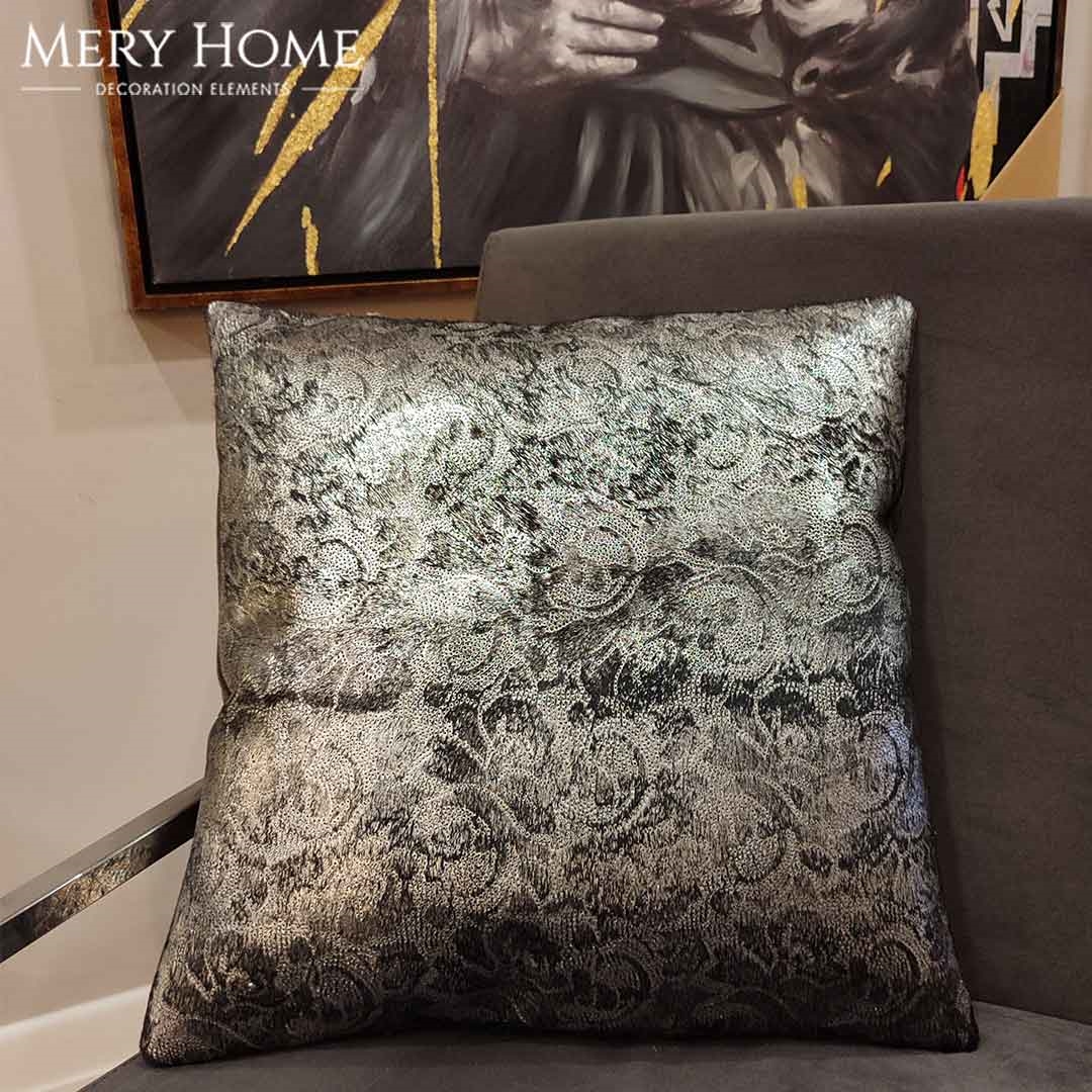 Lara Gümüş Varaklı Dekoratif Orijinal Deri Kırlent