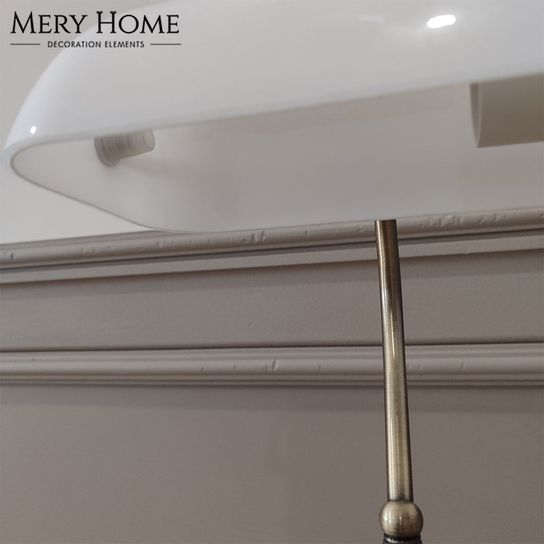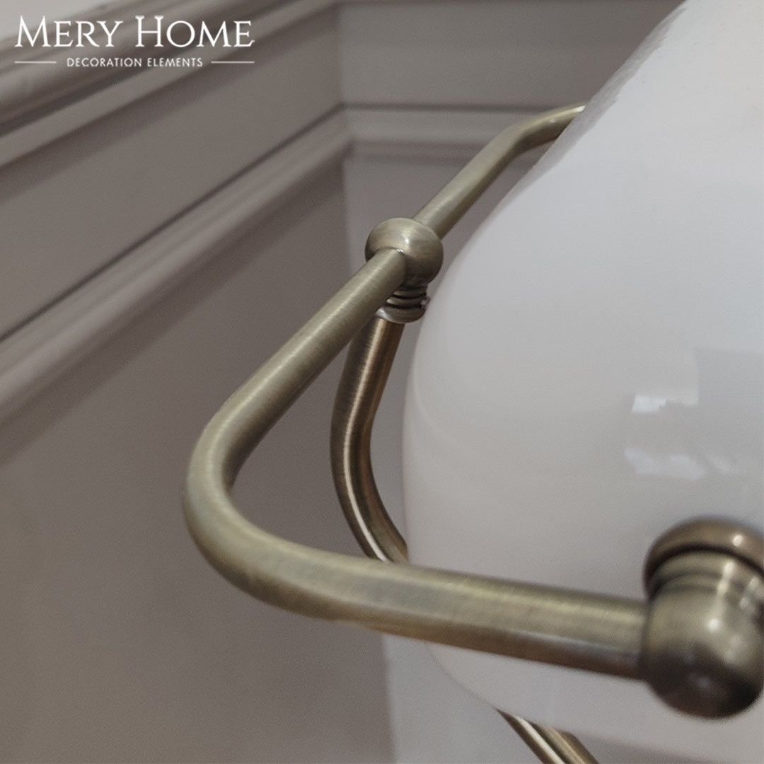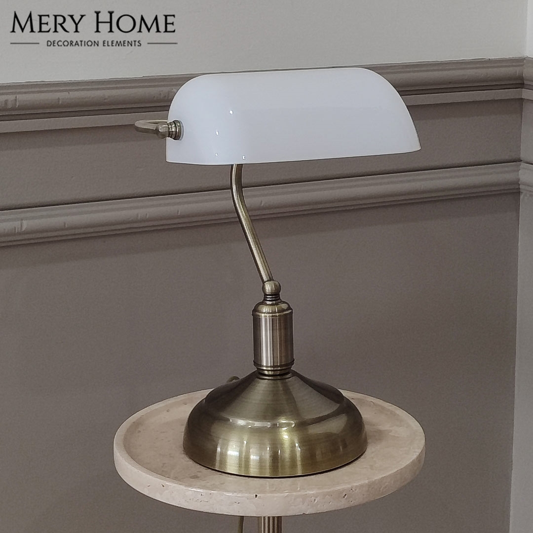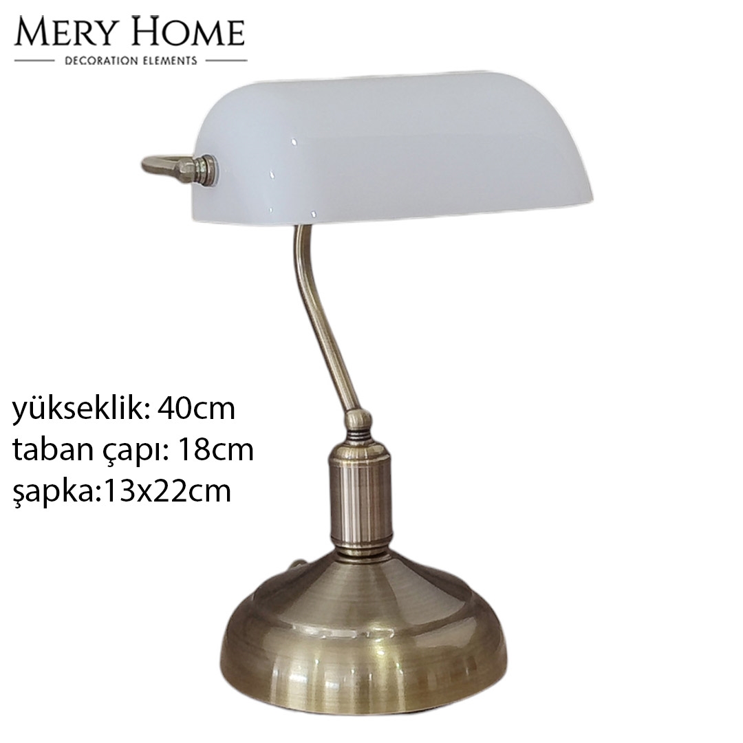 MRH Eskitme Gold Gövce Beyaz Cam Şapka Dekoratif Banker Masa Lambası Abajur