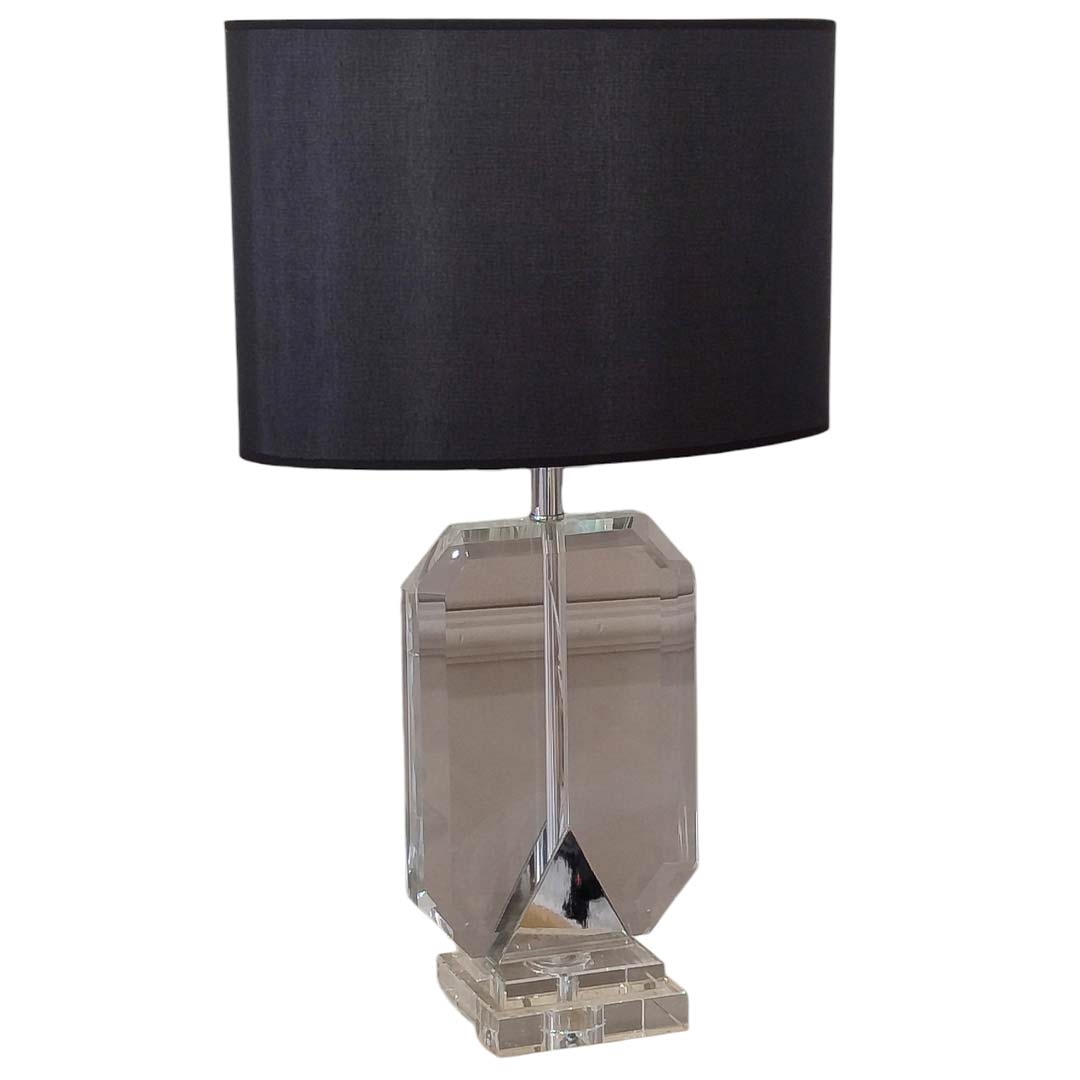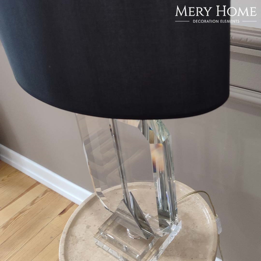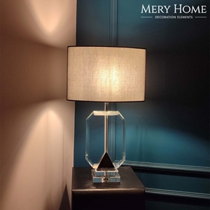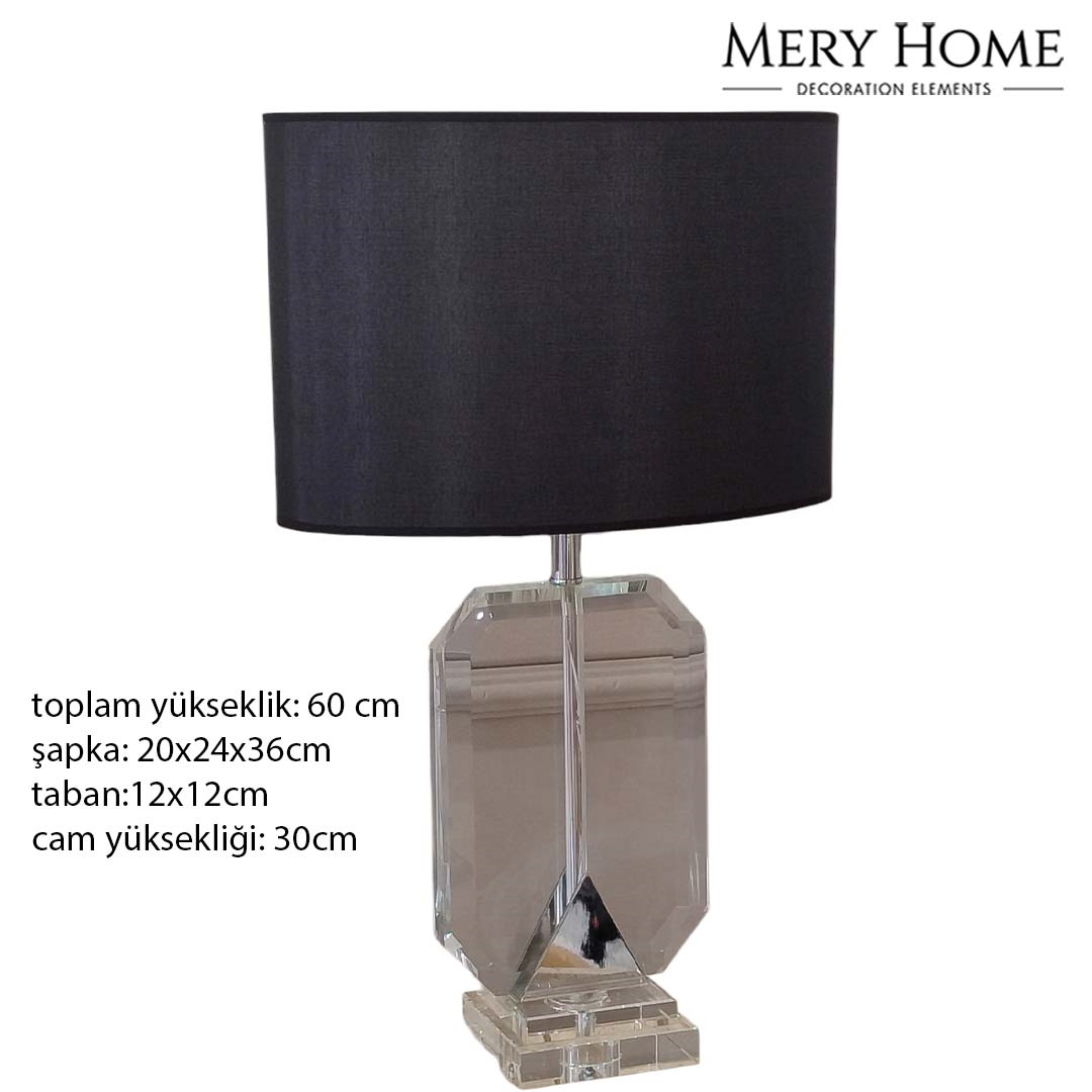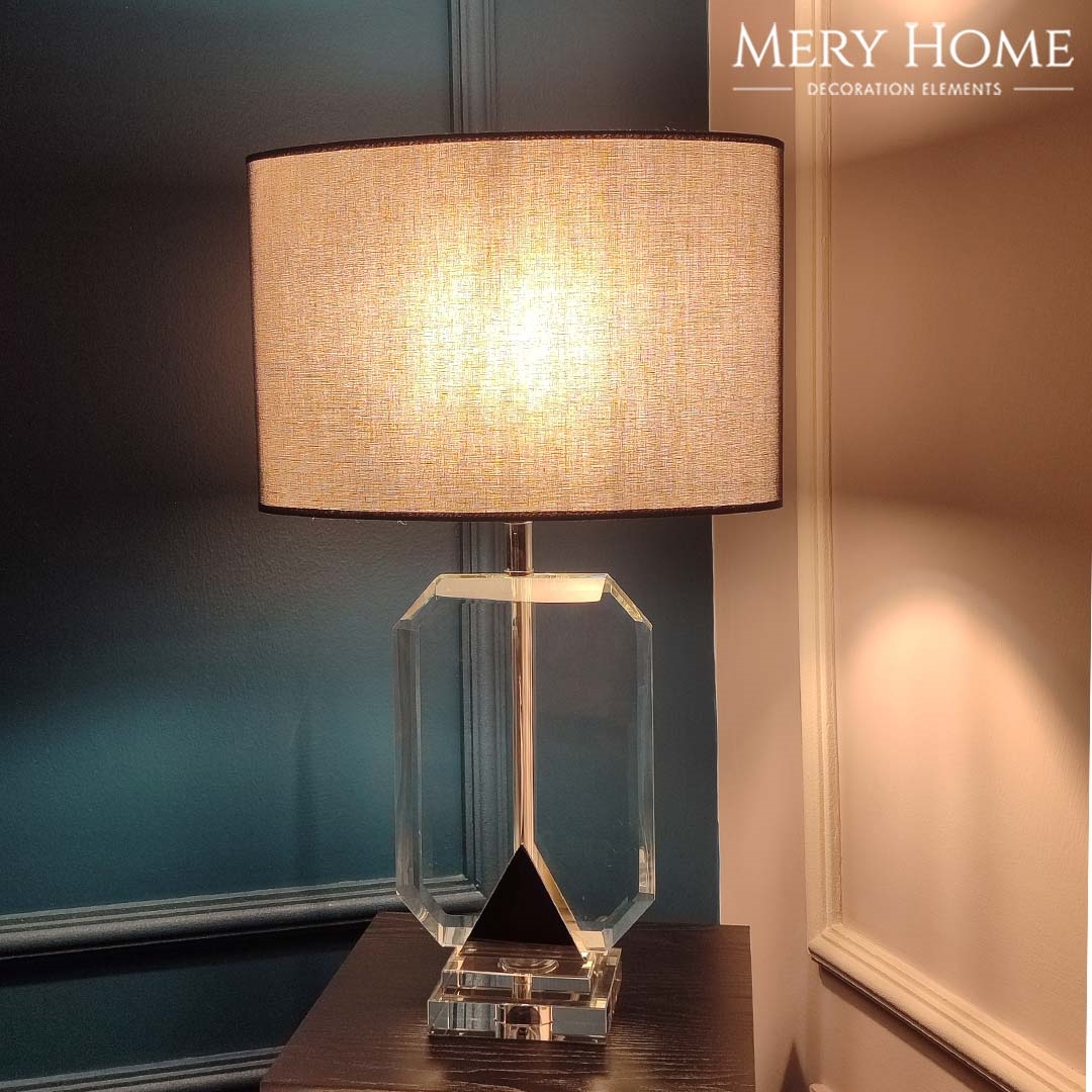 • Robert Gold Metal Detaylı Keten Kumaş Şapkalı Kristal Cam Lüks ve Modern Abajur Masa Lambası