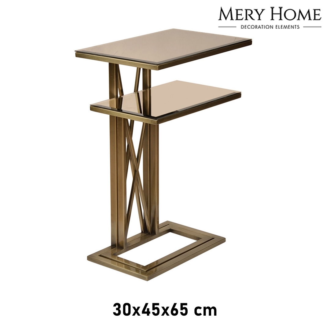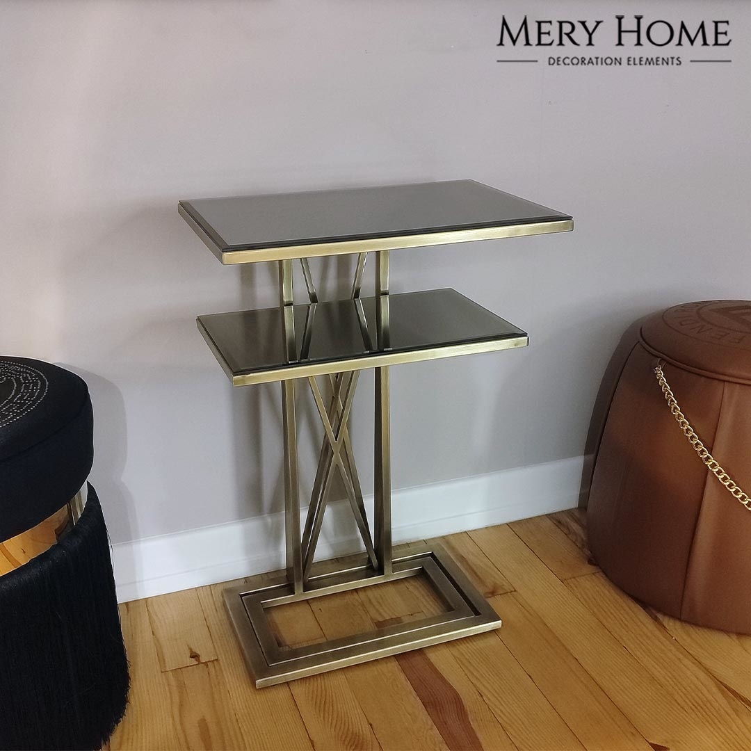 Level Eskitme Gold Metalli Füme Renk Aynalı Yan Sehpa Seti