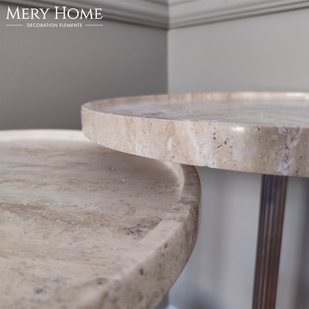 Doğal traverten taşının dayanıklı ve uzun ömürlü yapısı sayesinde bu yan sehpa seti, yıllar boyunca evinizin dekoratif odak noktalarından biri olarak kalır. Aynı zamanda zamansız ve sade tasarımı, hem modern hem klasik dekorasyon stillerine kolayca uyum sağlar.