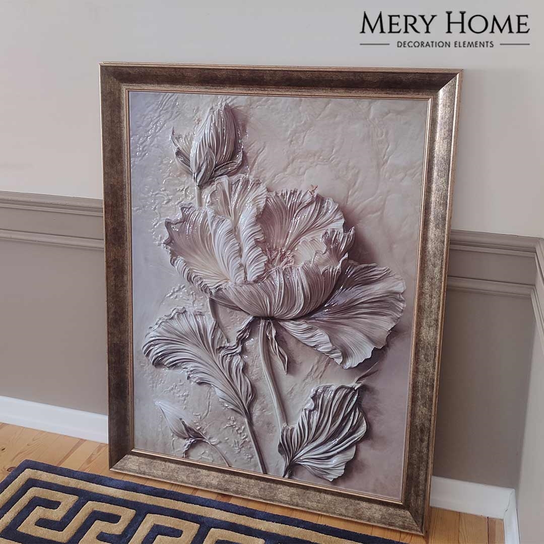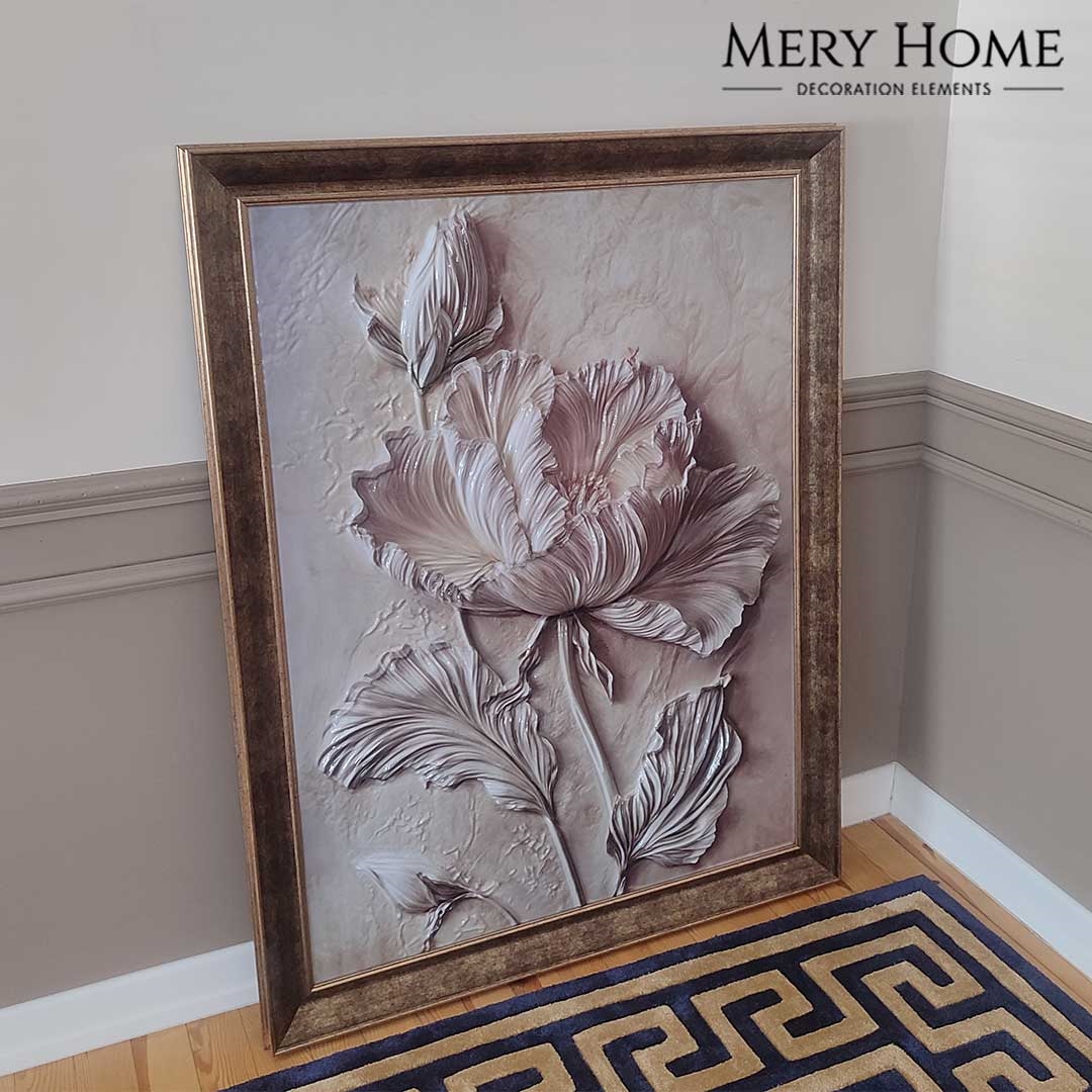 Doğanın en saf ve zarif halini duvarlarınıza taşıyan “Çiçeğin Dokusu” kabartmalı tablo, çiçek formunun dokunsal yüzeyle birleştiği etkileyici bir sanat eseridir. Üç boyutlu kabartma tekniğiyle işlenmiş narin yapraklar ve tomurcuklar, tabloya yalnızca görsel değil aynı zamanda hissedilebilir bir boyut kazandırıyor.