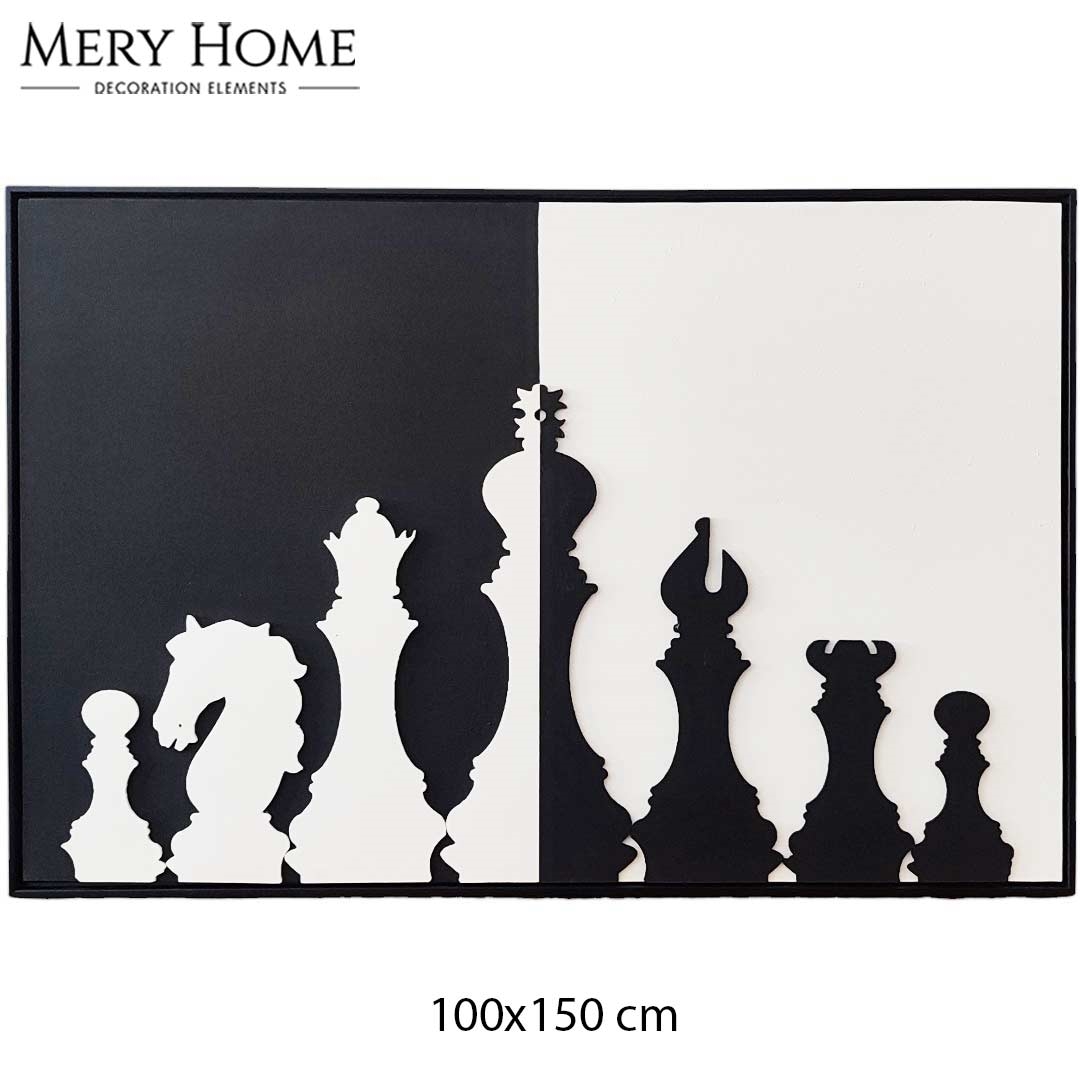 Modern dekorasyon tarzlarına kolayca entegre edilebilen bu tablo; ofisler, kütüphaneler, çalışma odaları ya da salonlar için güçlü bir ifade aracıdır. Siyah ve beyazın zıtlığı, tıpkı satranç oyununda olduğu gibi denge ve karşıtlık temasını yansıtır. Minimalist çizgilerle tasarlanan tablo, hem sanatsal hem de entelektüel bir atmosfer oluşturur.