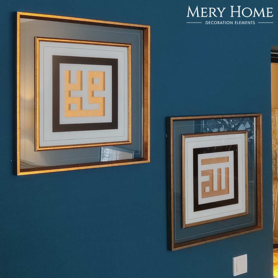 Vettur İslami Allah-Muhammed Yazılı Tablo Seti, İslam sanatının zarif hat çizgilerini modern dekorasyon anlayışıyla birleştirerek yaşam alanlarınıza huzur ve estetik kazandırır. Her biri 53 x 53 cm ölçülerindeki iki parçadan oluşan bu özel set, Allah ve Muhammed (S.A.V.) lafızlarını içeren tasarımıyla dikkat çeker.