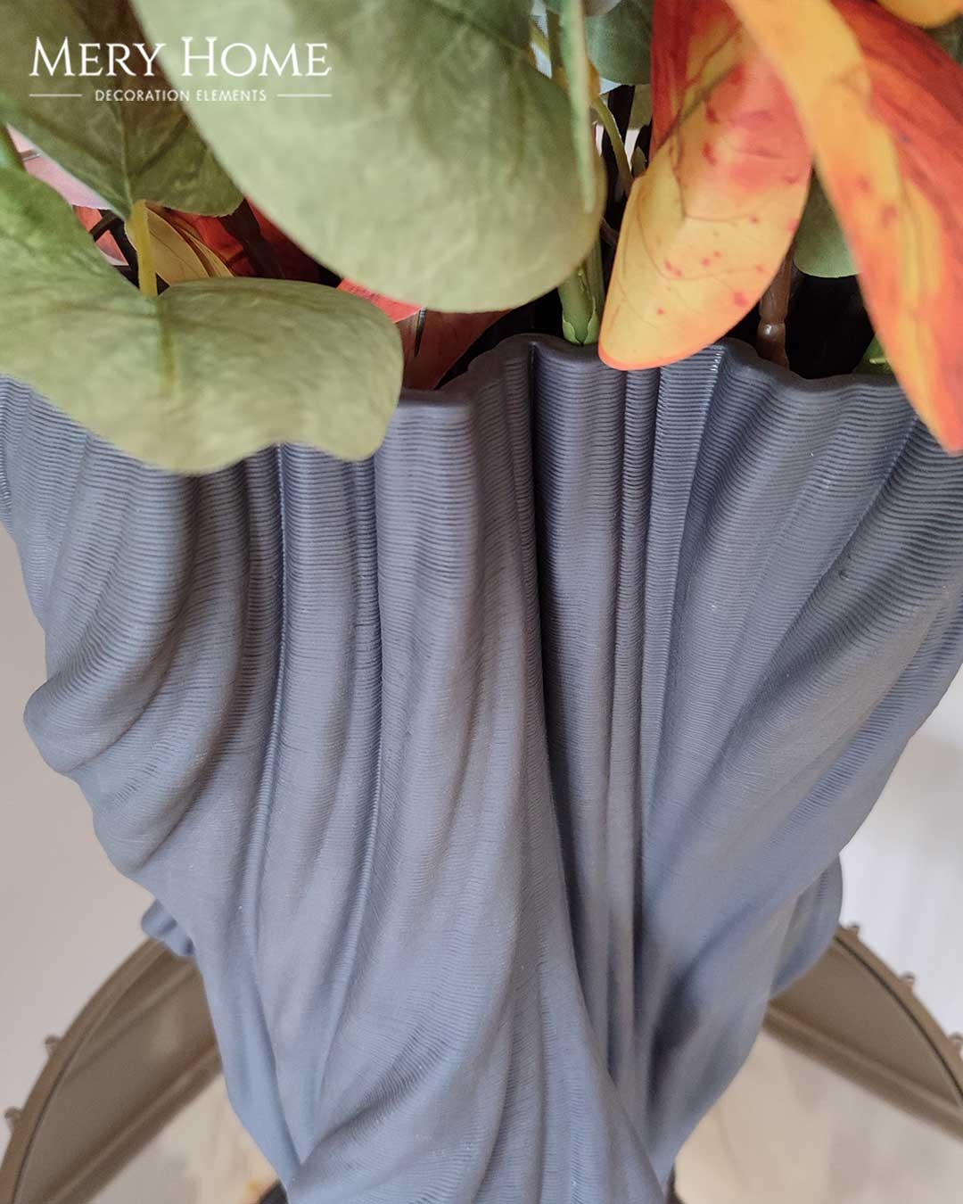 Modern tasarımıyla yaşam alanlarınıza şıklık katan Etna Dekoratif Lüks Vazo, 3D baskı teknolojisiyle üretilmiş kırışık görünümü ve gri renkli polyester döküm yapısıyla dikkat çeker.